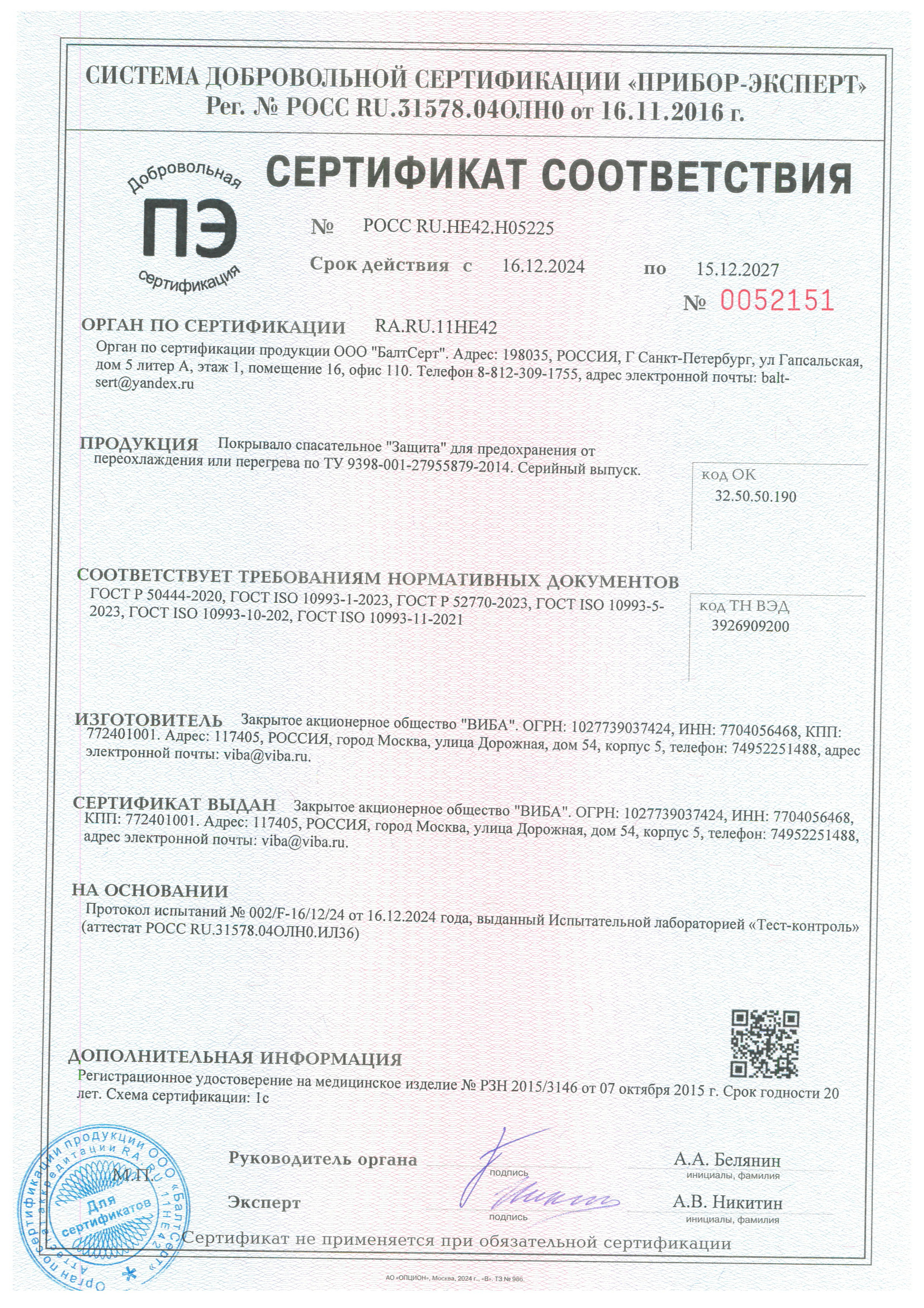 В России Покрывало прошло систему сертификации, что подтверждается следующими документами: